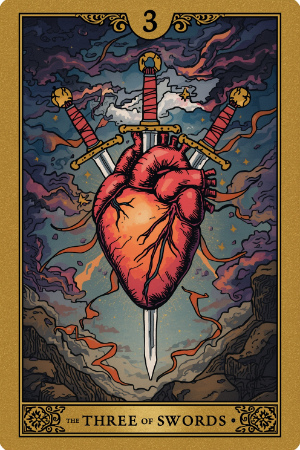 The Three of Swords doesn’t try to dress anything up. It’s a heart, pierced by three swords, hanging in a stormy sky. No people. No context. Just the wound, front and center. It’s one of the most honest cards in the entire Rider-Waite-Smith deck, and in a relationship reading, its honesty cuts clean.