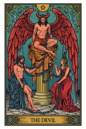 The Devil card in the Rider-Waite-Smith deck shows two figures — a man and a woman — chained to a pedestal where a horned, winged figure sits above them. Here’s the thing most people miss though: the chains around their necks are loose. They could slip free. They’re staying by choice, or at least by the belief that they have no choice. That belief is exactly what makes this card one of the clearest predictors of a toxic relationship in the entire deck.