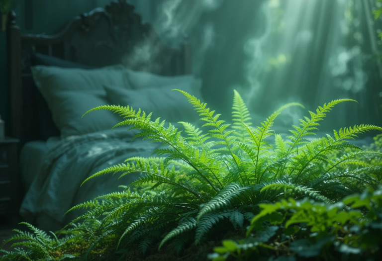 Keep a fern on the floor near your bed or at the foot of your bed—its energy settles low and spreads through the room like a mist. This helps neutralize chaotic vibrations and keeps your dream state calm and balanced.