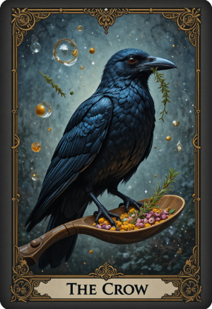 The crow chose you because you’re resourceful, clever, and you understand that the best magic uses what you already have. You don’t need fancy tools or rare ingredients—you make do with what’s in the pantry and somehow it works beautifully. Keep cooking, keep sharing, keep stirring love into everything you make. Your kitchen magic feeds more than just hunger.