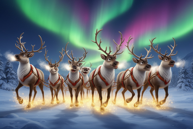 What really boosts their magic, though, is emotion. Reindeer fly strongest when they feel excitement, teamwork, and the thrill of helping Santa deliver joy. That’s why the team practices together, eats together, and plays together—they build a kind of bond that turns ordinary magic into something powerful enough to circle the world in a single night. Their flight isn’t just physics… it’s heart, wonder, and pure Christmas spirit tied into one soaring burst of energy.