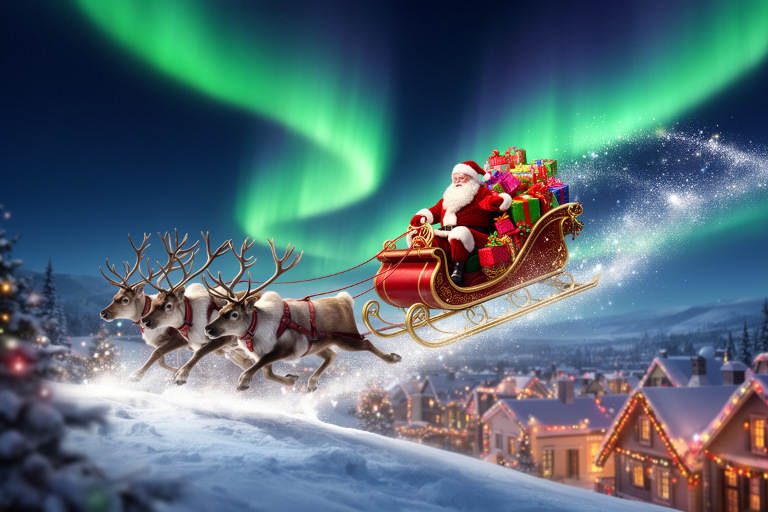Santa speeds across continents in a blur of tinkling bells and streaks of light.