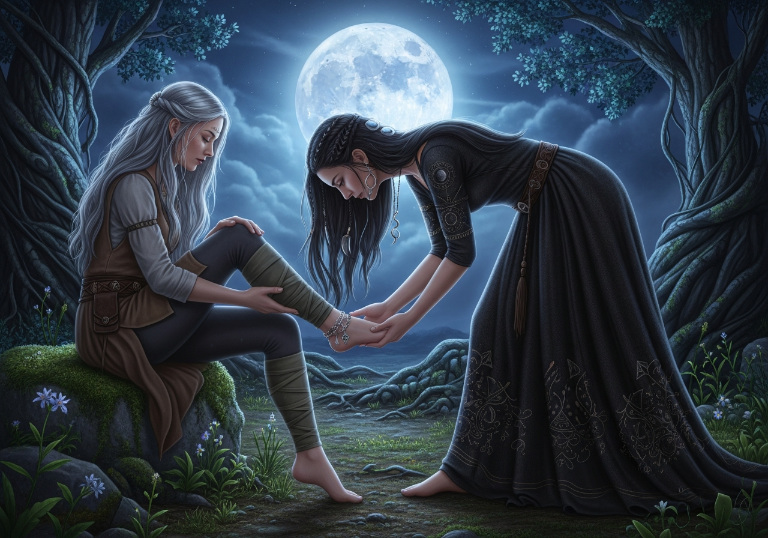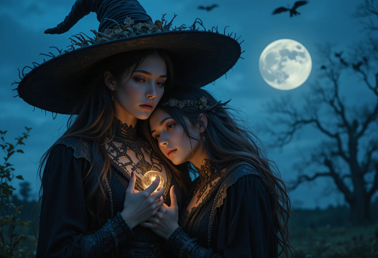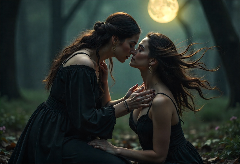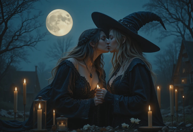 In ritual work, this moment softens the energy. It reminds the witch that magic isn’t only force—it’s tenderness, empathy, and love. This kiss balances strength with gentleness.