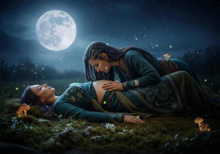 The womb is sacred whether physical, symbolic, or energetic. This kiss is about creation in all forms—ideas, spells, dreams, life force.