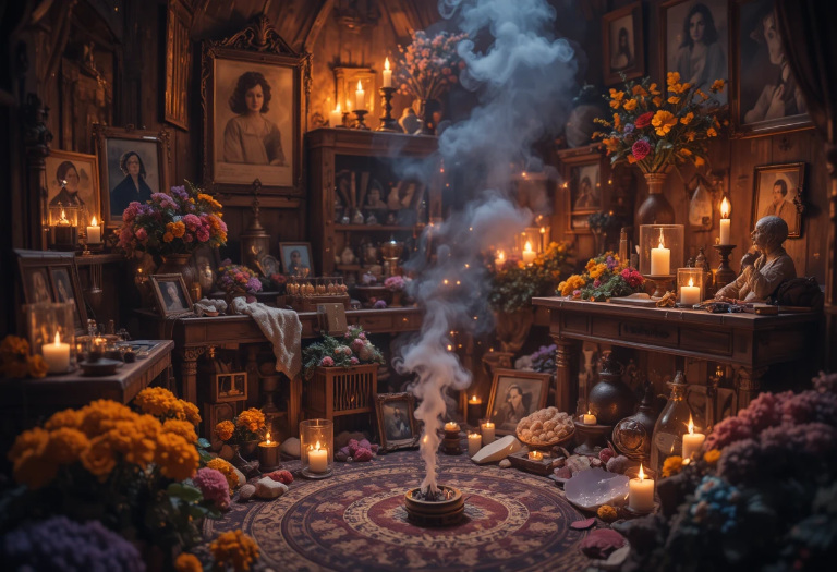 The heart of ancestor work often begins with an altar—a space where the physical meets the spiritual. You don’t need anything fancy. A small table, shelf, or even a windowsill can become sacred when you set the intention. Place photos of your loved ones, old heirlooms, or anything that reminds you of them. Add a few candles, a bowl of water, or some fresh flowers to symbolize life and remembrance.