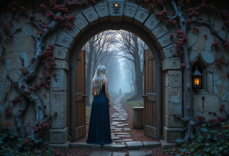 In old Irish and Scottish folk tradition, iron was nailed above the door to keep fairies and harmful spirits from entering. Rowan branches were tied in bundles and hung at the doorpost. In German and Scandinavian cottages, runic symbols were sometimes carved directly into the doorframe — not as decoration, but as a ward. A lock that no spirit could pick.