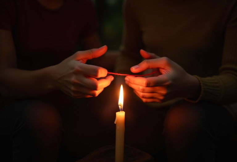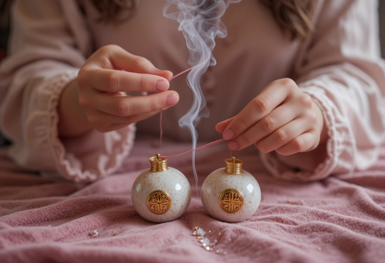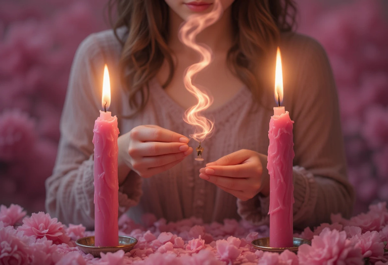 Place the two objects side by side. Slowly wrap the pink thread around both, not tightly—symbolizing unity without control. Burn the rose incense and say:
