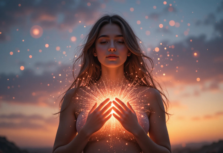 This one is extremely powerful. Sit still, breathe deep, and imagine your heartbeat syncing with theirs. Not literally — just energetically. Picture your heartbeat sending out soft pulses of light that gently tap their energy each time.